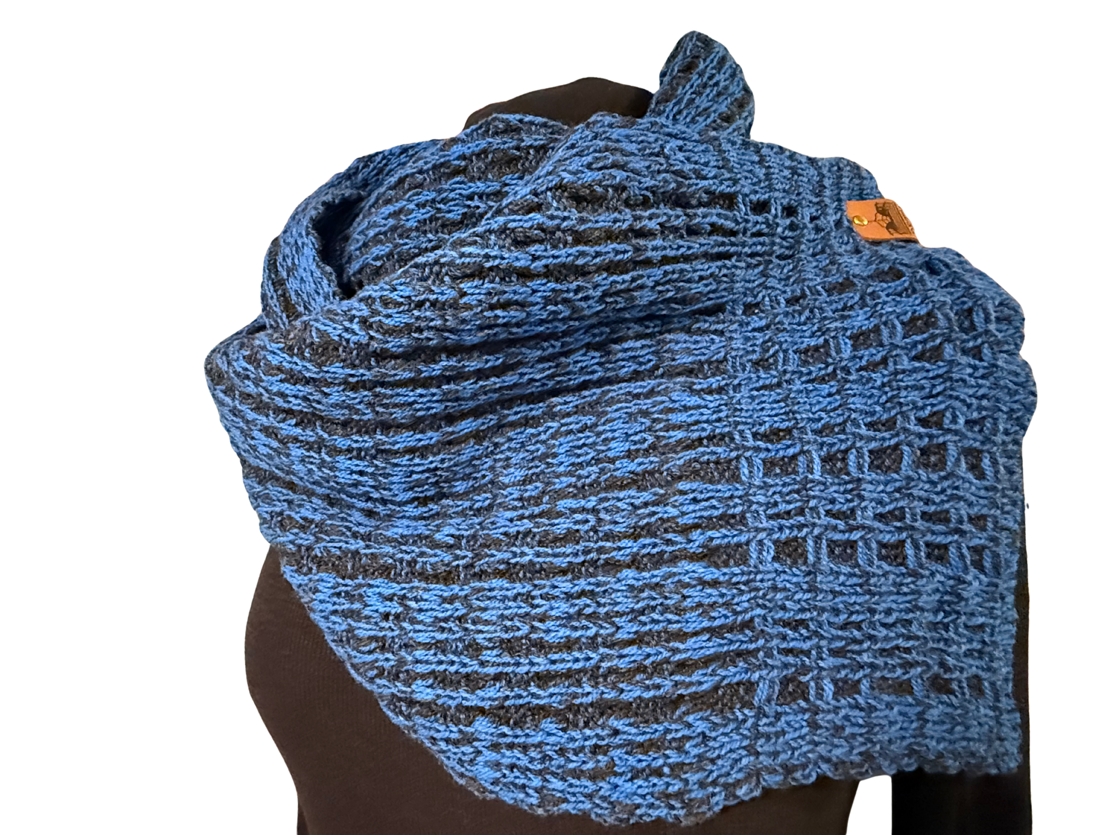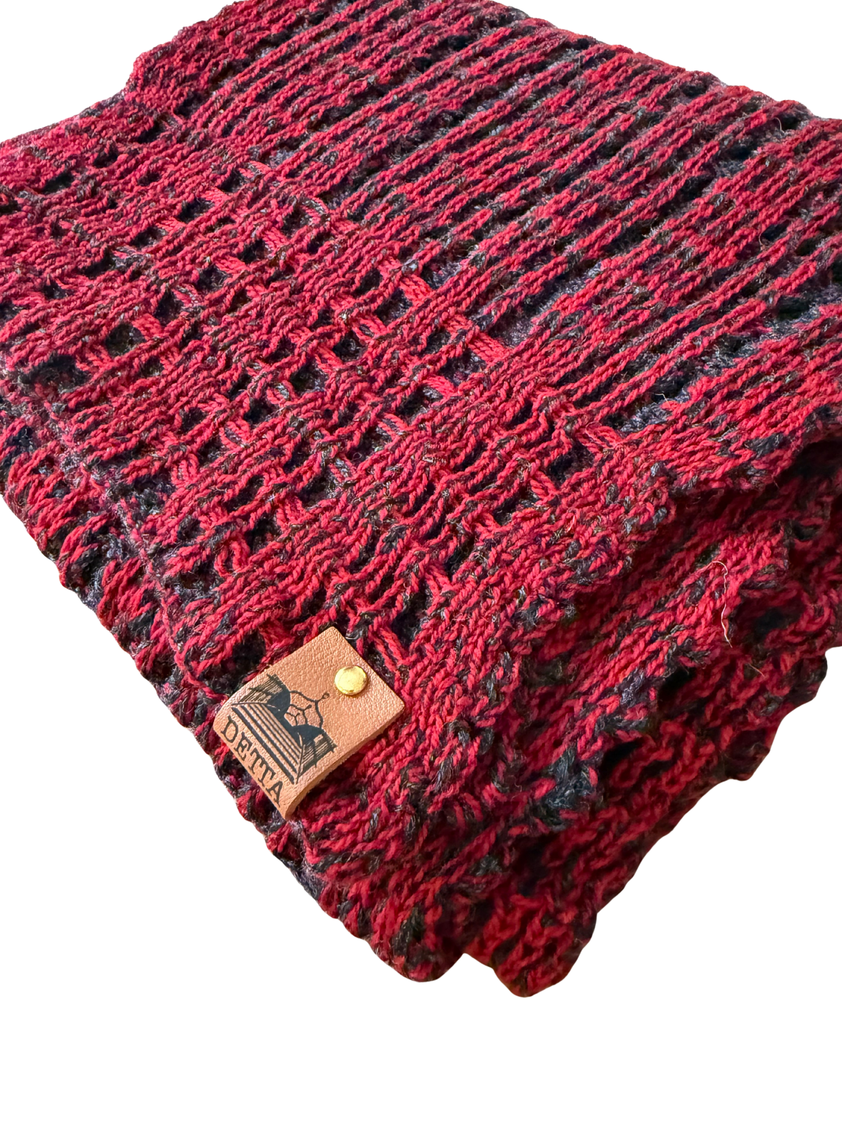 The sea shapes life on the West Coast of Ireland and Scotland, carrying stories, songs, and traditions. Anam na Mara — soul of the sea — is a collection shaped by that quiet influence. These scarves are designed as light, airy layers, like sea breezes woven into lace-like structures, allowing light and air to move through the cloth. Crafted from 100% merino wool, each piece drapes with softness and fluidity, offering warmth without weight. The palette is drawn directly from the shoreline — deep tidal blues, soft sand tones, and rich coastal berry hues — capturing the subtle contrasts of land and water. Made slowly by hand on our vintage knitting machine and with intention, Anam na Mara reflects a connection to place, craft, and the enduring rhythm of the sea.